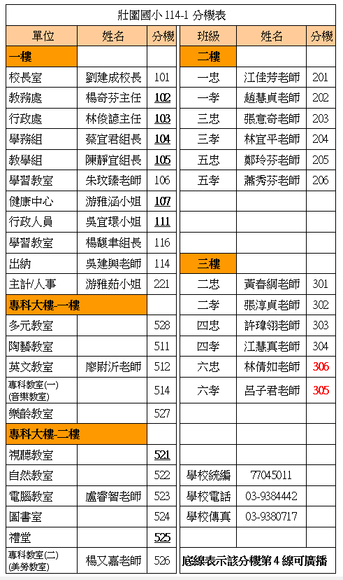 • ☎️114學年學校分機表